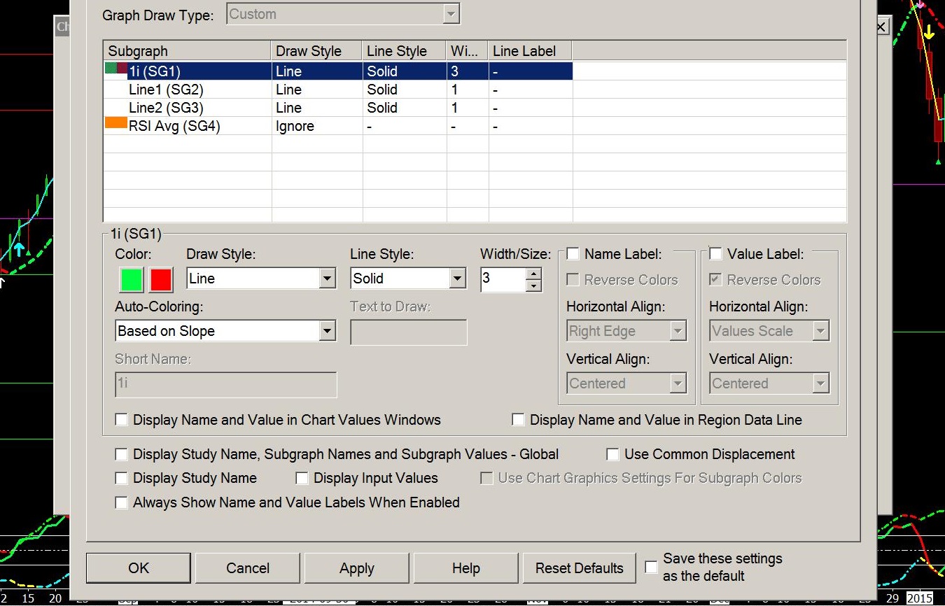 Please help hide information on more than one Subgraph under a Study/indicator. Explanation of Chart Studies on Sierra Chart: http://www.sierrachart.com/index.php?page=doc/doc_ChartStudies.html#PasswordProtectingStudies not sufficient information to hide all the subgraphs under a Study/indicator. With password protection, “names and inputs” cannot be seen but most “Studies” (indicators) are easily identifiable. For example, under Subgraphs: For any Studies with more than one “Subgraphs,” password protection leaves very easily identifiable traces For example, Study “RSI” shows the fourth line item RSI Avg (SG4) which indicates that it is a RSI study. Study “Pivot Point” with the exception of the first line item, shows all the Rs, Ss, PPs which easily indicates it as a Pivot Point study. |