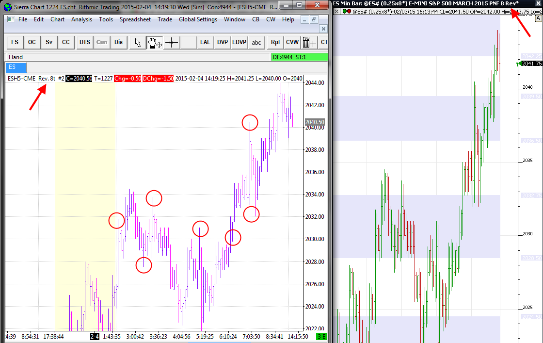 How Reversal Bars work is documented here: Chart Settings: Reversal Bar (in ticks) (ReversalAmount - MinimumLength) (Chart >> Chart Settings >> Bar Period >> Intraday Chart Bar Period >> Bar Period Type) Make sure you also have a tick by tick data configuration: Tick by Tick Data Configuration Sierra Chart Support - Engineering Level Your definitive source for support. Other responses are from users. Try to keep your questions brief and to the point. Be aware of support policy: https://www.sierrachart.com/index.php?l=PostingInformation.php#GeneralInformation For the most reliable, advanced, and zero cost futures order routing, *change* to the Teton service: Sierra Chart Teton Futures Order Routing |
