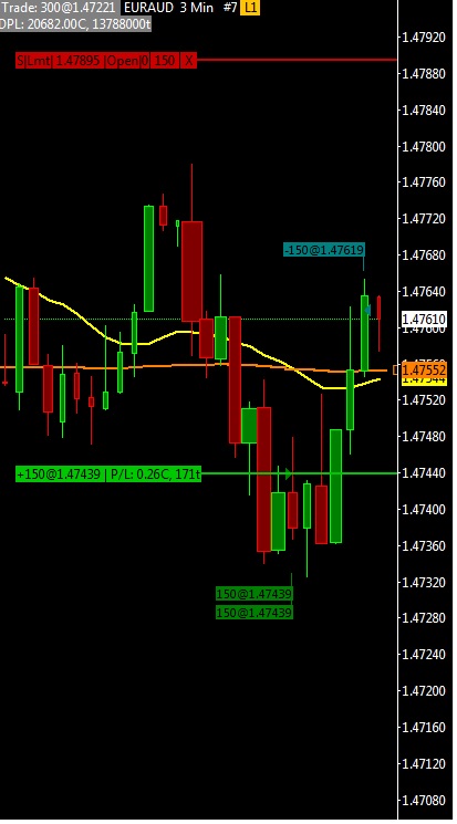 The order on the chart is enclosed. Initial order 300 Units (300k) - T1=180T, 150 Units (150k) I set the value per Tick @ $0.766 (~ correct as of current crosses), The P&L shows 0.26C? and the 1st close at 180T shows a realised P&L at 2068?? Can you explain these figures? Obviously something is set wrong - at 180T I would calculate the P&L to be $206.82, a factor of 10 out? Have SC or Lmax changed the ratio of SC:Lmax of 10:1? Order chart enc. |