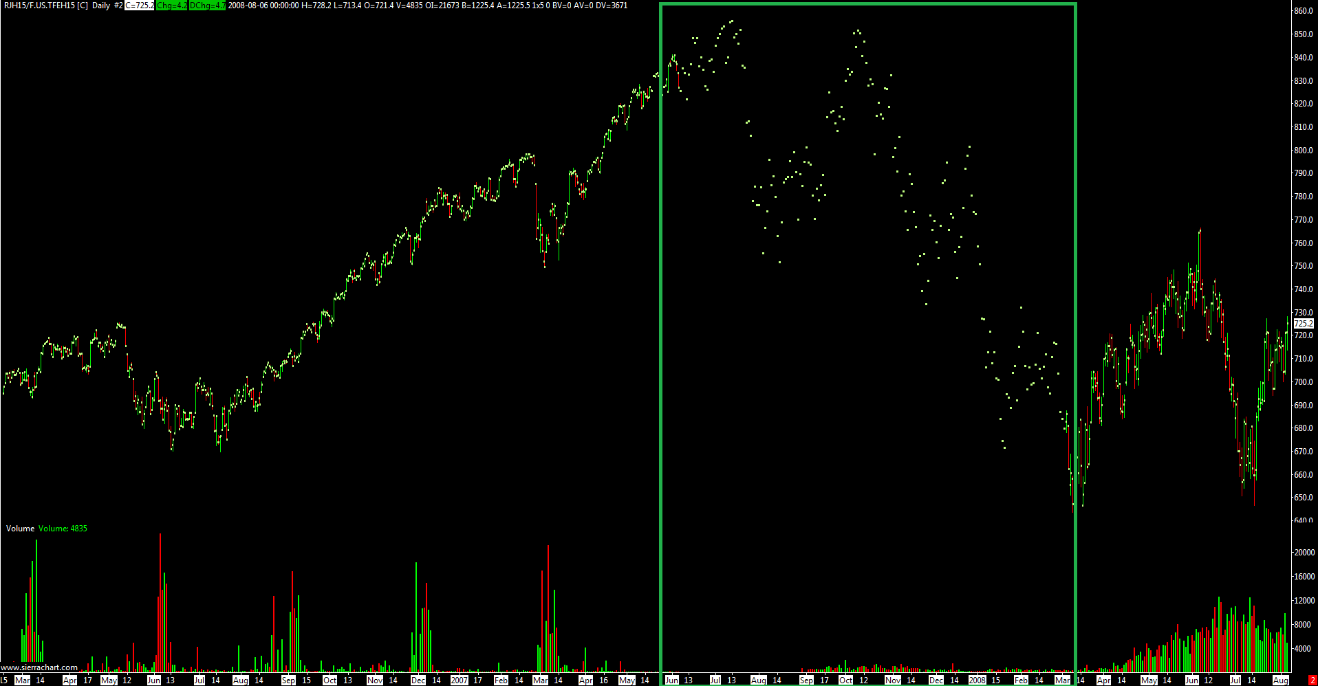 It relates to it, the problem is I am not sure how that data can be corrected being it is so old because I am not sure there is replacement data our data provider can get access to, to correct it. In order for us to know what particular contract month that is, enable Chart >> Show Rollover Dates. And post an image again. Sierra Chart Support - Engineering Level Your definitive source for support. Other responses are from users. Try to keep your questions brief and to the point. Be aware of support policy: https://www.sierrachart.com/index.php?l=PostingInformation.php#GeneralInformation For the most reliable, advanced, and zero cost futures order routing, *change* to the Teton service: Sierra Chart Teton Futures Order Routing |