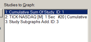 Study 1 is just a cumulative sum of the values in the main graph, which has 1 second bars. Study 2 is a "Study/Price Overlay" of another cumulative sum study, also 1 second bars intervals. Study 3 is a "Study Subgraphs Add" which takes these two studies and adds them together. I am seeing that about once every 3-5 seconds, the value of the Add study quickly changes, and then is back to the correct value. I was able to time it so that I took a screen shot when I saw the value "jump" higher and it is attached. Is there something I can do to prevent this, maybe a setting in one of the cumulative sum studies, or in the study/price overlay study? |