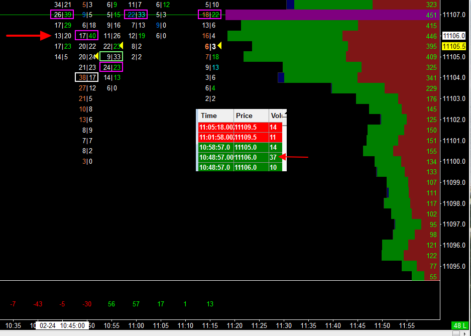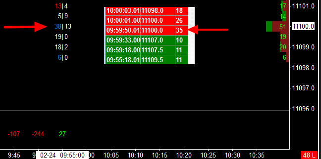 In the first two screenshots is shown a #Bars Chart and part of a T&S from today (current FDax). At 09:59:50 there was triggered a Volume of 35 with a price of 11100.0 and in the second screenshot there was triggered at 10:48:57 a Volume of 37 with a price of 11106.0. From my point of view both amounts should be seen on the #Bars (see red arrows near the #Bars) but I cannot. Why is that difference or am I wrong? Please find attached also my study settings. Many thanks. |