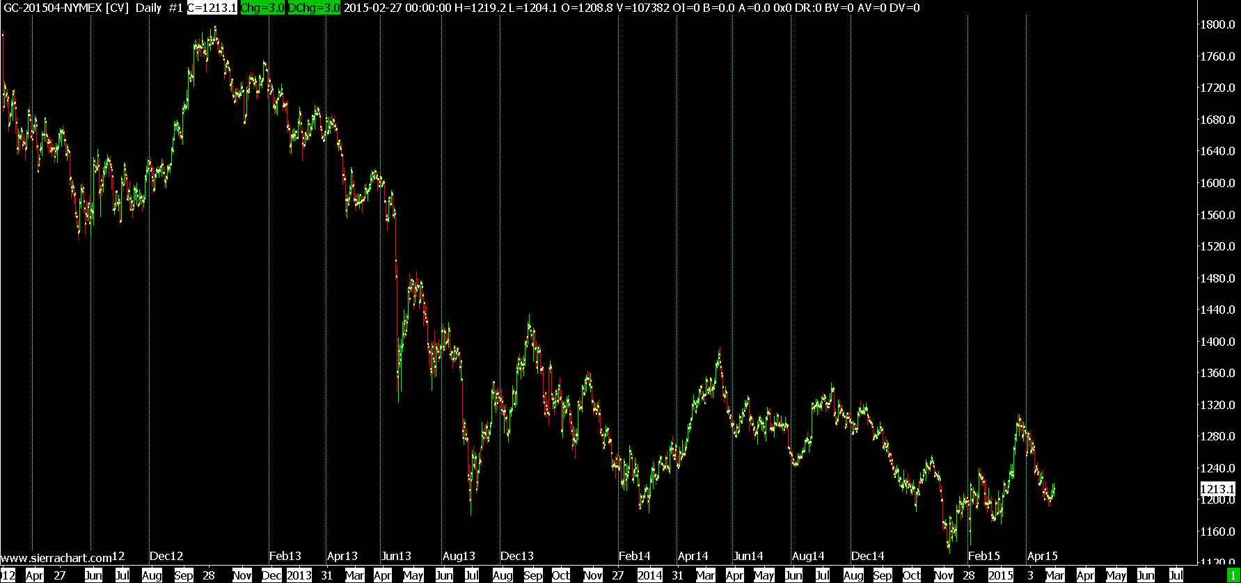 GC-201504-NYMEX [M] I have the CME data feed through SC with the IB API. It doesn't pull out the data properly anymore and my weekly continuation charts have gone from awesome decade-long view to a measly few bars. thanks Date Time Of Last Edit: 2015-03-01 20:02:51