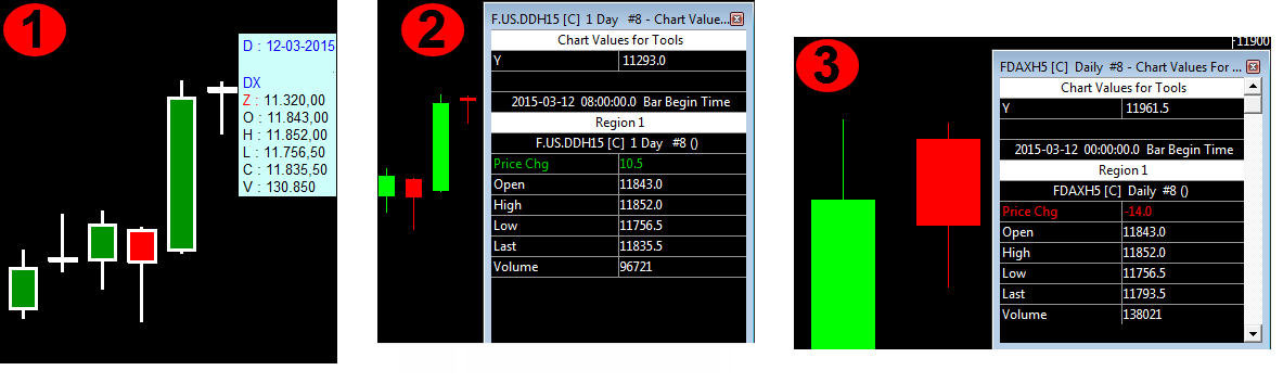 The attached file show three times a cut out of a D1 chart from yesterday. No 1 is my reference datafeed (Visual Chart). No 2 and 3 are two different brokers but the same chart software ==>> Sierra Charts :-). No 1 and No 2 contain nearly the same values however not the volume value. No 1 = 130,850 - no 2 = 96,721. Where is that difference coming from? Now I'd like to compare no 2 and no 3. As I wrote - same platform ==>> SC. After starting the platforms I get the same data for a daily chart as in no 2. However. By changing a M15 chart (example) in a Daily chart in no 3 I get new data as you see in no 3 esp. wrong data for LAST (this change works only in no.3 - in no. 2 no change in data). The only thing I really know that the data of no. 1 are correct. What can I do to get correct data for volume? |