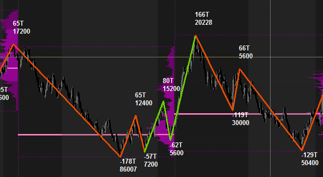 Hi, I'm unable to find documentation for the "Color ZigZag Line Using" input in the Zig Zag study. "Slope" is self-evident, but would like some info regarding "confirmed volume" and "trend confirmed volume". Can you point me to the right place, please? Secondly, when "Use Multi-Line Labels" is set to yes, the study appears to be adding 5 ticks to the text label offset on the swings high (but not on the swings low). I've uploaded a screen grab showing this. FYI, I have the study set to "tick offset". Is this a bug? If not how can I fix it so the text offsets on the swings high and low are equidistant when using multi-line labels? |