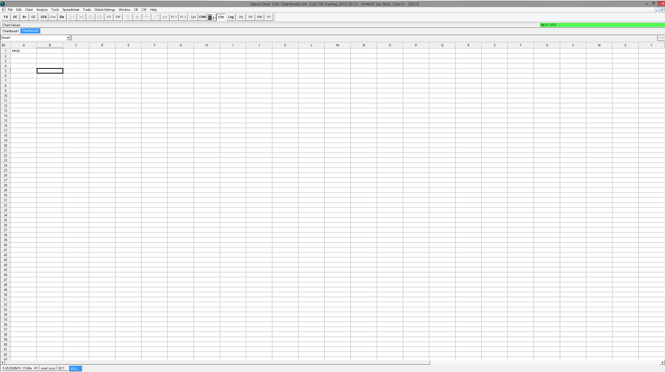 ##HD is for Old Spreadsheets and we need to update the documentation. This will be done later today. You do need to set it to be a Quote Spreadsheet which will do this for all Sheets. But we will see if we can limit that. Sierra Chart Support - Engineering Level Your definitive source for support. Other responses are from users. Try to keep your questions brief and to the point. Be aware of support policy: https://www.sierrachart.com/index.php?l=PostingInformation.php#GeneralInformation For the most reliable, advanced, and zero cost futures order routing, *change* to the Teton service: Sierra Chart Teton Futures Order Routing |