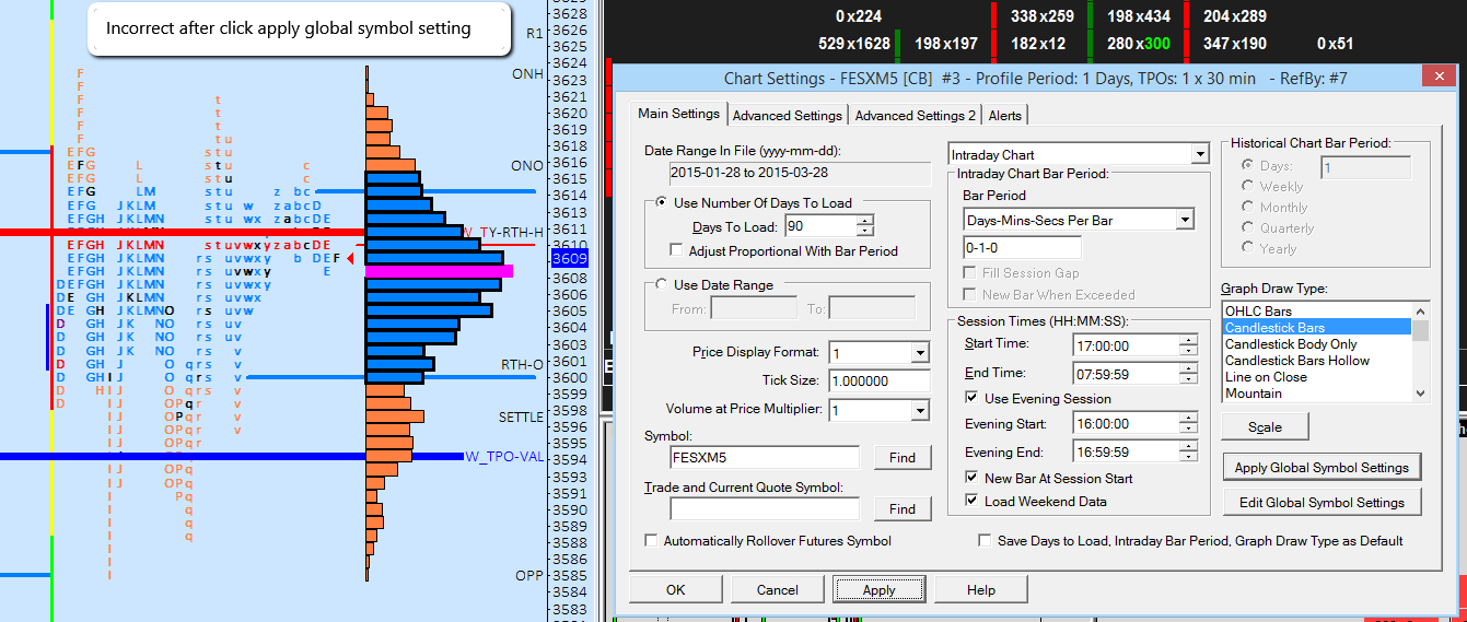 Look alright now but sierra chart time doesn't meet on my time zone, will this be fixed in up coming version?? One feature I would like to request is can Sierrachart team adds vertical value line for TPO study. The mix value vertical line will help me have better view of value of market profile and volume profile. I have attached an example screenshot |