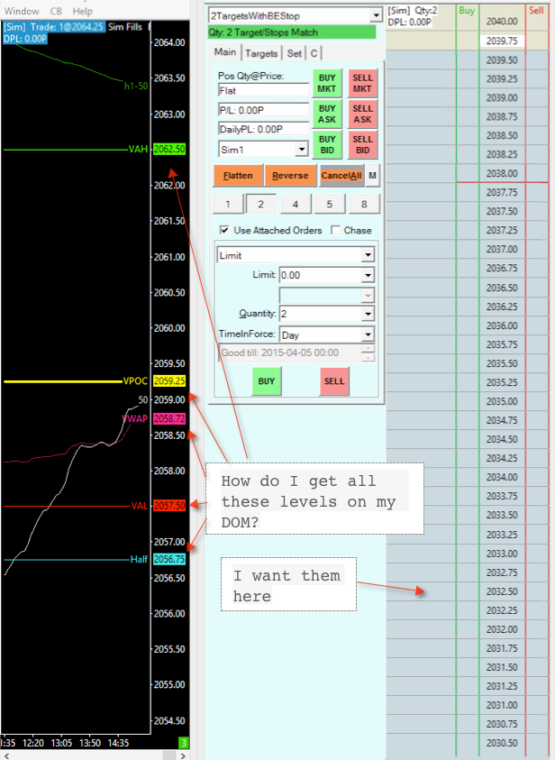 Hi Sierra Chart support, I want to have the levels from the chart on the left of the image on my DOM. Please see the screenshot. Can you please help me with the steps required to do this? thanks |