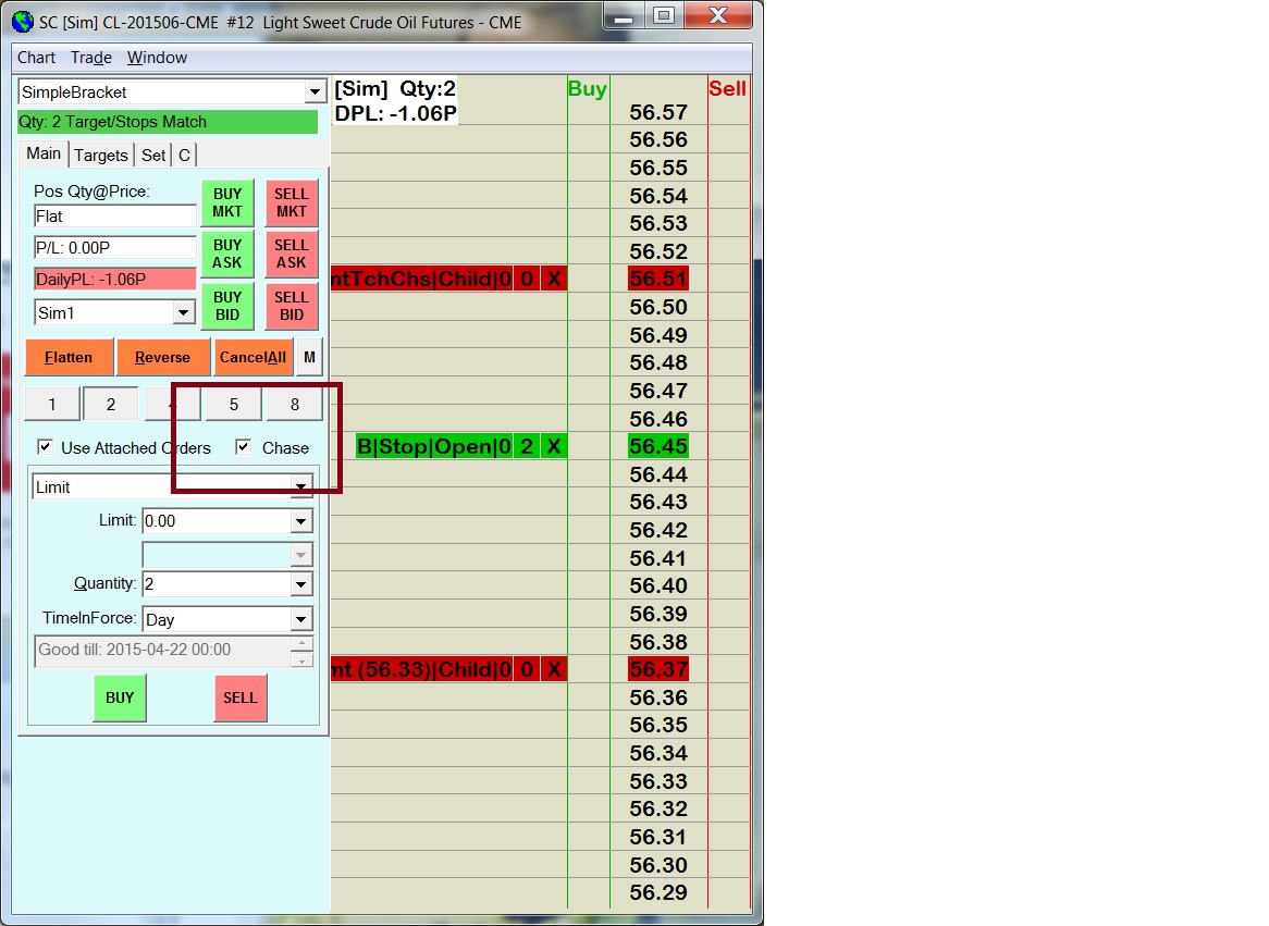 Dear sirs, Thanks for the hint. But it does NOT solve my problem. My plan is described as follows: please see the attachement-(sierra-1) LONG @56.45 Step-trailing-stop @56.37 (stop-offset 8 and step amount 2) Target 56.51 my question: If the price move up 2 Ticks, 56.45 +0.02= 56.47 , The step-stop-loss will be i.e. 56.37 + 0.02 = 56.39 .... ok this part works , but What should I do in the configuration such that the Target change to 56.51 +0.02 = 56.53 automatically ?? For other platforms I do not need to do anything, the target will be automatcially adjusted up to 56.53 But. Sierra Char does not change my target. Please help me ! |