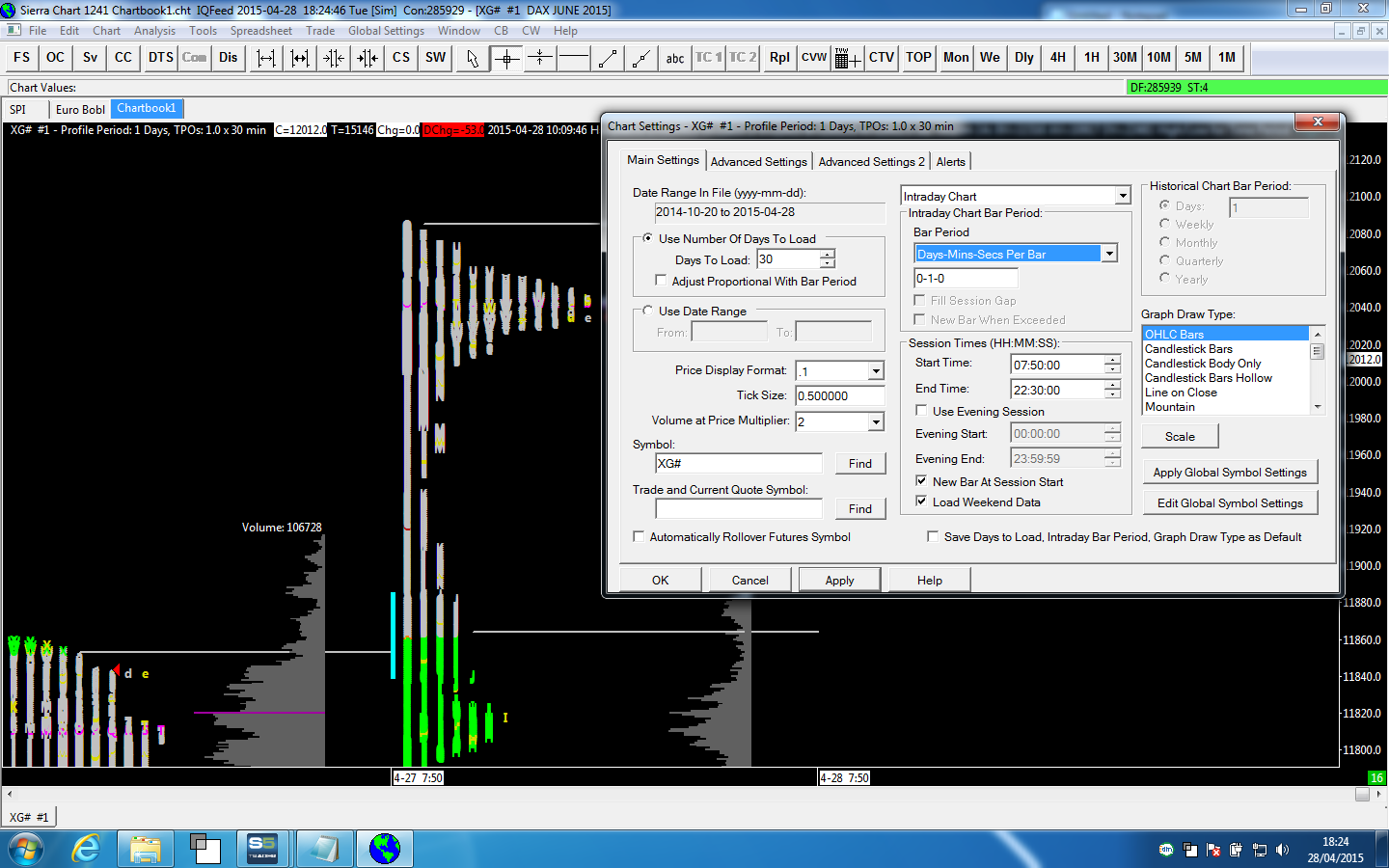 We do not see a screenshot. Provide an image of the chart, by following these instructions: http://www.sierrachart.com/index.php?l=PostingInformation.php#Image Sierra Chart Support - Engineering Level Your definitive source for support. Other responses are from users. Try to keep your questions brief and to the point. Be aware of support policy: https://www.sierrachart.com/index.php?l=PostingInformation.php#GeneralInformation For the most reliable, advanced, and zero cost futures order routing, *change* to the Teton service: Sierra Chart Teton Futures Order Routing |