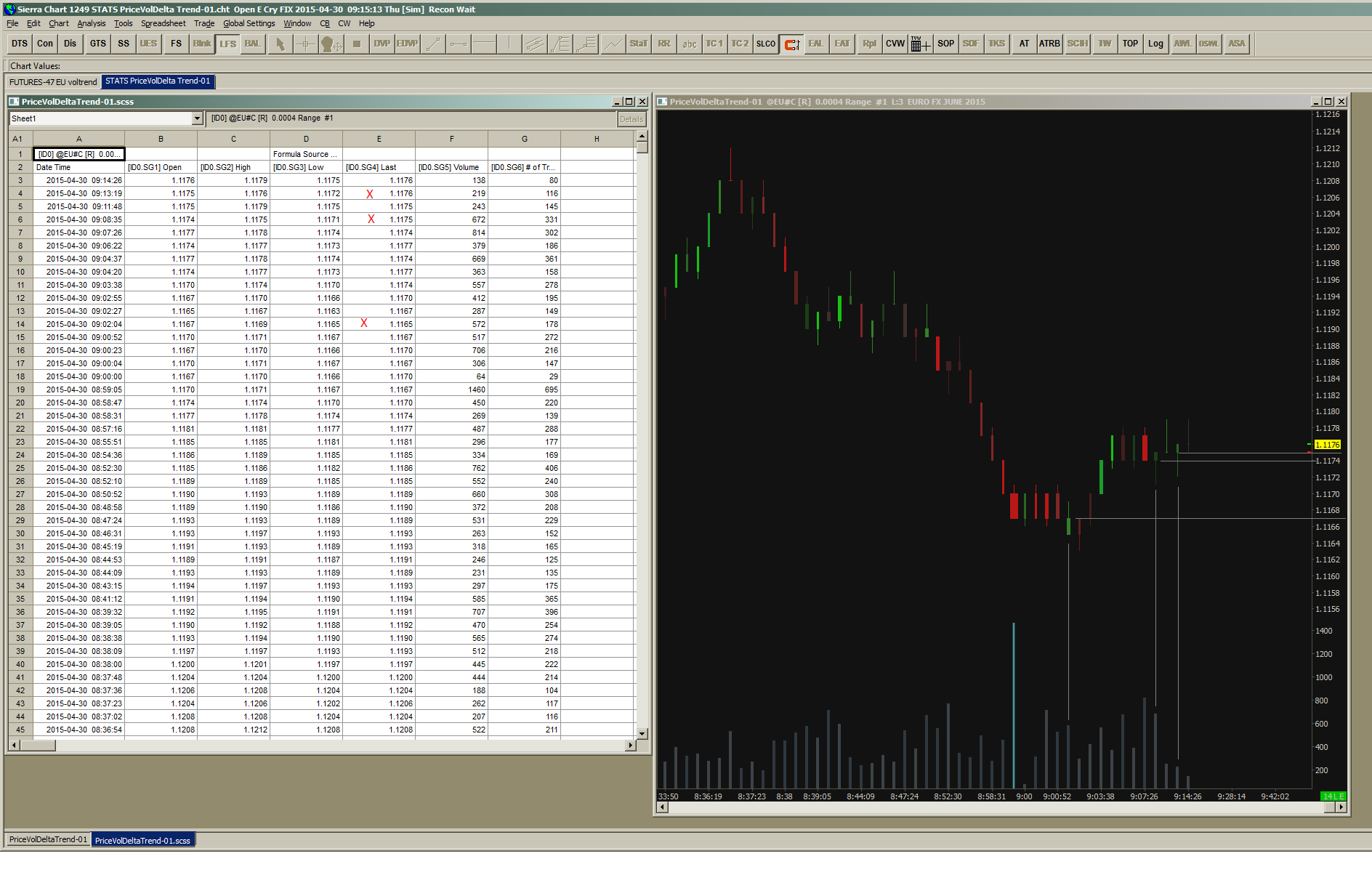 No, we do not need pictures. We are checking on this today. Update: We do not see any problems with this. The OHLC values for the Range bar type you specified matches exactly what is outputted to the corresponding Sheet when using the Spreadsheet Study. Sierra Chart Support - Engineering Level Your definitive source for support. Other responses are from users. Try to keep your questions brief and to the point. Be aware of support policy: https://www.sierrachart.com/index.php?l=PostingInformation.php#GeneralInformation For the most reliable, advanced, and zero cost futures order routing, *change* to the Teton service: Sierra Chart Teton Futures Order Routing Date Time Of Last Edit: 2015-04-29 09:52:30