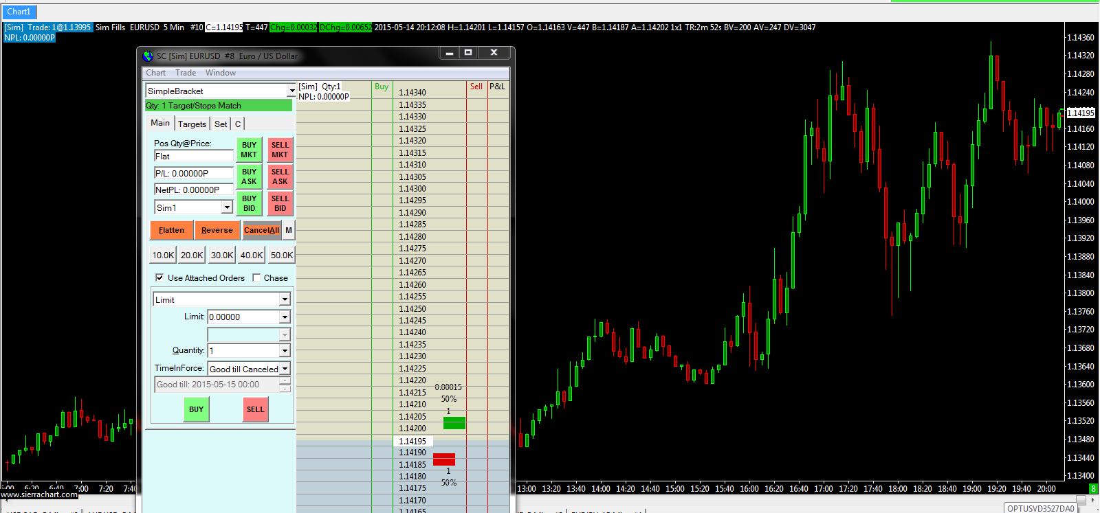 Above is what you requested. I have found that I can see the right side/price ladder of the Dom from the File menu but I still cannot see it by clicking on the chart where it only shows the left side. Also how do I remove the 50% on the price ladder as per in the image above? Sierra Chart Support Date Time Of Last Edit: 2015-05-14 21:43:16