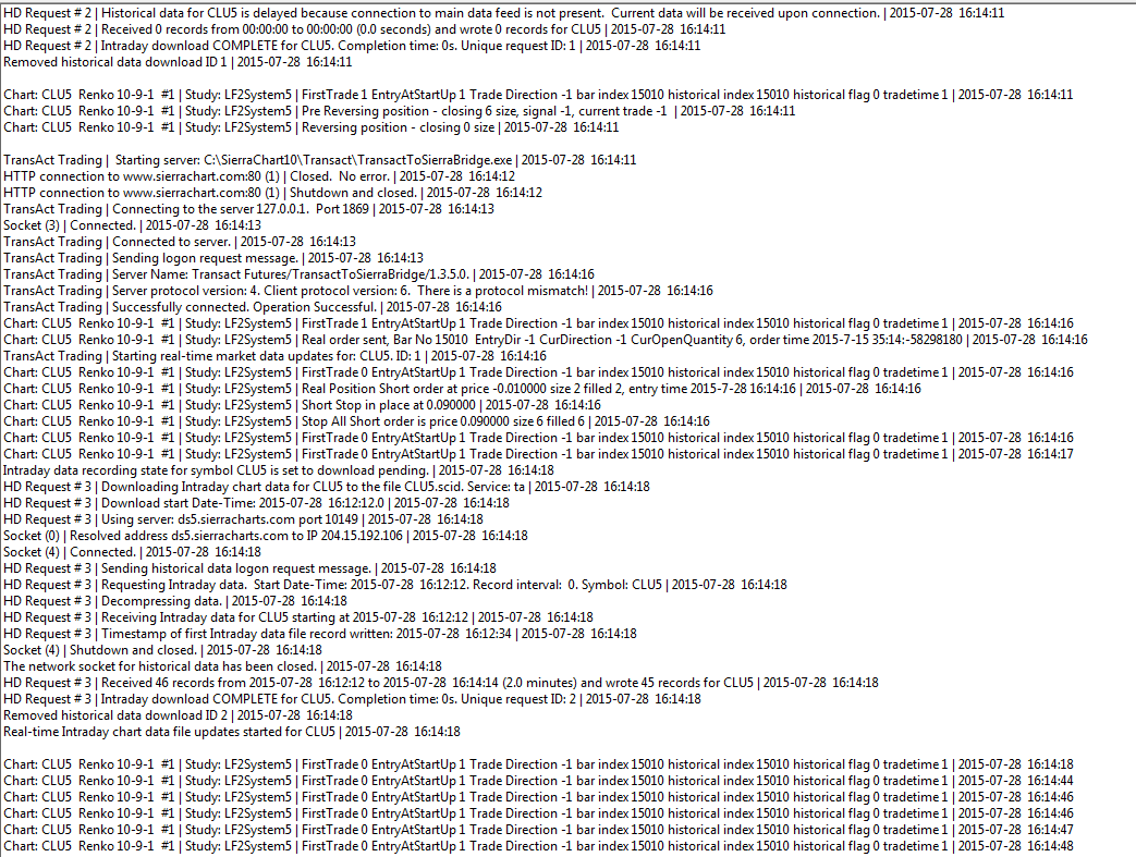 Sierra Chart Support - Engineering Level Your definitive source for support. Other responses are from users. Try to keep your questions brief and to the point. Be aware of support policy: https://www.sierrachart.com/index.php?l=PostingInformation.php#GeneralInformation For the most reliable, advanced, and zero cost futures order routing, *change* to the Teton service: Sierra Chart Teton Futures Order Routing |