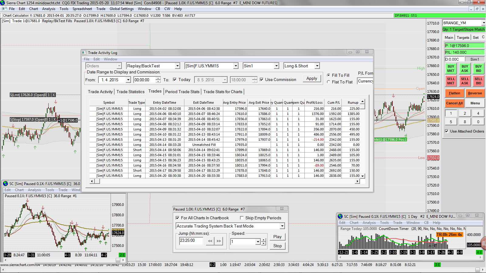 Hello, When I try to delete some Trade Activity from log then records can be deleted while trades corresponding to those records won't disappear and they remain being calculated into total results and statistics. Nothing seems to happen... Also I somehow get unmatched fill error in trading activity when using market replay resulting in non-sense trade results. I use only 150 USD / 85 USD PT/SL and breakeven and no trade remained open overnight. Since I cannot delete the corrupted record (14-04-2015) and re-trade my situation I can't fix statistics. This always worked I used it often. http://www.sierrachart.com/image.php?l=1432139875683.png Date Time Of Last Edit: 2015-05-20 16:50:39