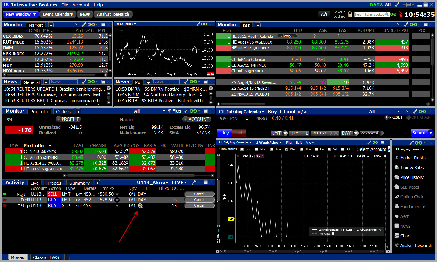 Software version: 1259 | 2015-06-01 08:49:37 Uses New Spreadsheets | 2015-06-01 08:49:37 Usage end date: 2016-03-27 | 2015-06-01 08:49:37 Enabled for: Advanced Features. | 2015-06-01 08:49:37 Enabled for: Advanced Features 2. | 2015-06-01 08:49:37 Enabled for: Sierra Chart Historical Data Service. | 2015-06-01 08:49:37 Allow Support for Sierra Chart Data Feeds is enabled. | 2015-06-01 08:49:37 Active service: Interactive Brokers | 2015-06-01 08:49:37 Time Zone: -05:00:00 (CST-06CDT+01,M3.2.0/02:00,M11.1.0/02:00) | 2015-06-01 08:49:37 2015-06-01 08:49:37 Local computer clock time | 2015-06-01 08:49:37 2015-06-01 13:49:37 GMT time | 2015-06-01 08:49:37 2015-06-01 08:49:37 Time zone adjusted time | 2015-06-01 08:49:37 Time difference to server time: 3 seconds. | 2015-06-01 08:49:37 Program path: C:\SierraChart_IB\ | 2015-06-01 08:49:37 Data Files path: C:\SierraChart_IB\Data\ | 2015-06-01 08:49:37 OS Version Number: 6.1 | 2015-06-01 08:49:37 Locale Information: C | 2015-06-01 08:49:37 Checking for new symbol settings for ib | 2015-06-01 08:49:37 HTTP connection to www.sierrachart.com:80 (0) | Resolved address sierrachart.com to IP 5.9.8.236 | 2015-06-01 08:49:37 HTTP connection to www.sierrachart.com:80 (1) | Connected. | 2015-06-01 08:49:37 Symbol settings are up-to-date for ib | 2015-06-01 08:49:37 HTTP connection to www.sierrachart.com:80 (1) | Closed. No error. | 2015-06-01 08:49:42 HTTP connection to www.sierrachart.com:80 (1) | Shutdown and closed. | 2015-06-01 08:49:42 Interactive Brokers: Connecting to 127.0.0.1:7496 | 2015-06-01 08:49:54 Socket (2) | Connected. | 2015-06-01 08:49:54 Socket connected to TWS. Sending client version: 62. Waiting for acceptance. | 2015-06-01 08:49:54 Interactive Brokers | TWS server version: 76 | 2015-06-01 08:49:54 Interactive Brokers | Connected. Waiting for account information. | 2015-06-01 08:49:54 IB Account information received. | 2015-06-01 08:49:54 Interactive Brokers | Received 3 Trade Accounts from TWS. | 2015-06-01 08:49:54 Interactive Brokers | Connected to Live account. | 2015-06-01 08:49:54 Interactive Brokers | Year-Month last connected to Live account: 2015-06 | 2015-06-01 08:49:54 Interactive Brokers | Requesting Trade Positions for account: U112* | 2015-06-01 08:49:54 Next valid order ID: 3839 | 2015-06-01 08:49:54 Message from IB: Market data farm connection is OK:usfuture. IB Error Code: 2104. Request ID: -1. | 2015-06-01 08:49:54 Message from IB: Market data farm connection is OK:usfuture.us. IB Error Code: 2104. Request ID: -1. | 2015-06-01 08:49:54 Message from IB: Market data farm connection is OK:cashfarm. IB Error Code: 2104. Request ID: -1. | 2015-06-01 08:49:54 Message from IB: Market data farm connection is OK:usfarm.us. IB Error Code: 2104. Request ID: -1. | 2015-06-01 08:49:54 Message from IB: Market data farm connection is OK:usfarm. IB Error Code: 2104. Request ID: -1. | 2015-06-01 08:49:54 Message from IB: HMDS data farm connection is OK:ushmds.us. IB Error Code: 2106. Request ID: -1. | 2015-06-01 08:49:54 Message from IB: HMDS data farm connection is OK:ilhmds. IB Error Code: 2106. Request ID: -1. | 2015-06-01 08:49:54 Message from IB: HMDS data farm connection is OK:ushmds. IB Error Code: 2106. Request ID: -1. | 2015-06-01 08:49:54 Next valid order ID: 3839 | 2015-06-01 08:49:54 IB Account information received. | 2015-06-01 08:49:54 Interactive Brokers | Received 3 Trade Accounts from TWS. | 2015-06-01 08:49:54 Interactive Brokers | Connected to Live account. | 2015-06-01 08:49:54 Interactive Brokers | Year-Month last connected to Live account: 2015-06 | 2015-06-01 08:49:54 Interactive Brokers | Received Trade Positions download end message for account U1123239 | 2015-06-01 08:49:55 Interactive Brokers | Stopping automatic Trade Position updates for account: U112* | 2015-06-01 08:49:55 Interactive Brokers | Requesting Trade Positions for account: U113* | 2015-06-01 08:49:55 Message from IB: API client has been unsubscribed from account data.. IB Error Code: 2100. Request ID: -1. | 2015-06-01 08:49:55 Interactive Brokers | Received Trade Positions download end message for account U1130463 | 2015-06-01 08:49:55 Interactive Brokers | Stopping automatic Trade Position updates for account: U113* | 2015-06-01 08:49:55 Interactive Brokers | Requesting Trade Positions for account: U889* | 2015-06-01 08:49:55 Message from IB: API client has been unsubscribed from account data.. IB Error Code: 2100. Request ID: -1. | 2015-06-01 08:49:55 Interactive Brokers | Received Trade Positions download end message for account U889465 | 2015-06-01 08:49:56 Interactive Brokers | Stopping automatic Trade Position updates for account: U889* | 2015-06-01 08:49:56 Message from IB: API client has been unsubscribed from account data.. IB Error Code: 2100. Request ID: -1. | 2015-06-01 08:49:56 Interactive Brokers | Requesting Trade Positions for account: U112* | 2015-06-01 08:49:59 Interactive Brokers | Received Open orders end message. | 2015-06-01 08:49:59 Interactive Brokers | Received Trade Positions download end message for account U1123239 | 2015-06-01 08:50:00 Interactive Brokers | Stopping automatic Trade Position updates for account: U112* | 2015-06-01 08:50:00 Interactive Brokers | Requesting Trade Positions for account: U113* | 2015-06-01 08:50:00 Message from IB: API client has been unsubscribed from account data.. IB Error Code: 2100. Request ID: -1. | 2015-06-01 08:50:00 Interactive Brokers | Received Trade Positions download end message for account U1130463 | 2015-06-01 08:50:00 Interactive Brokers | Stopping automatic Trade Position updates for account: U113* | 2015-06-01 08:50:00 Interactive Brokers | Requesting Trade Positions for account: U889* | 2015-06-01 08:50:00 Message from IB: API client has been unsubscribed from account data.. IB Error Code: 2100. Request ID: -1. | 2015-06-01 08:50:00 Interactive Brokers | Received Trade Positions download end message for account U889465 | 2015-06-01 08:50:00 Interactive Brokers | Stopp