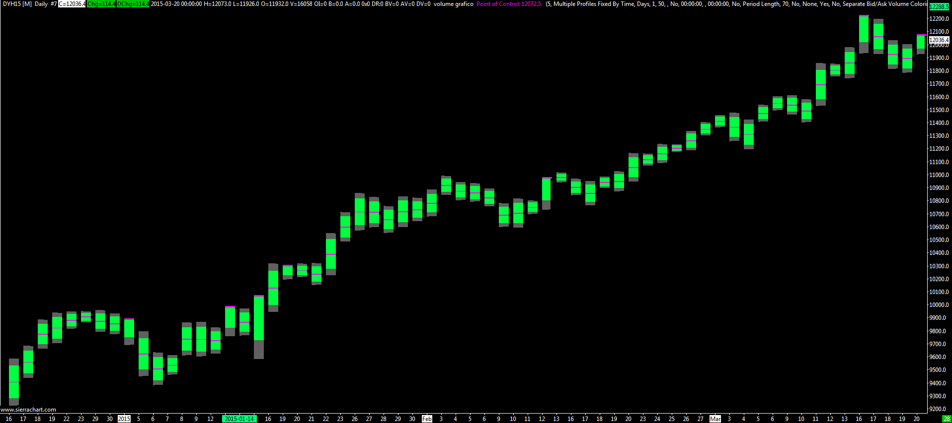 For accuracy you need to use the Volume by Price study only on an Intraday chart for accuracy. Not on a Historical Daily chart. So you want the Volume profiles to be 1 day in length each? Sierra Chart Support - Engineering Level Your definitive source for support. Other responses are from users. Try to keep your questions brief and to the point. Be aware of support policy: https://www.sierrachart.com/index.php?l=PostingInformation.php#GeneralInformation For the most reliable, advanced, and zero cost futures order routing, *change* to the Teton service: Sierra Chart Teton Futures Order Routing Date Time Of Last Edit: 2015-06-10 17:53:37