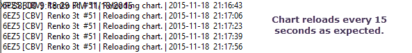 No difference in behavior if I change the last "if" block to as follows: if ((sc.CurrentSystemDateTime - lastLoad) > 15 * SECONDS) {