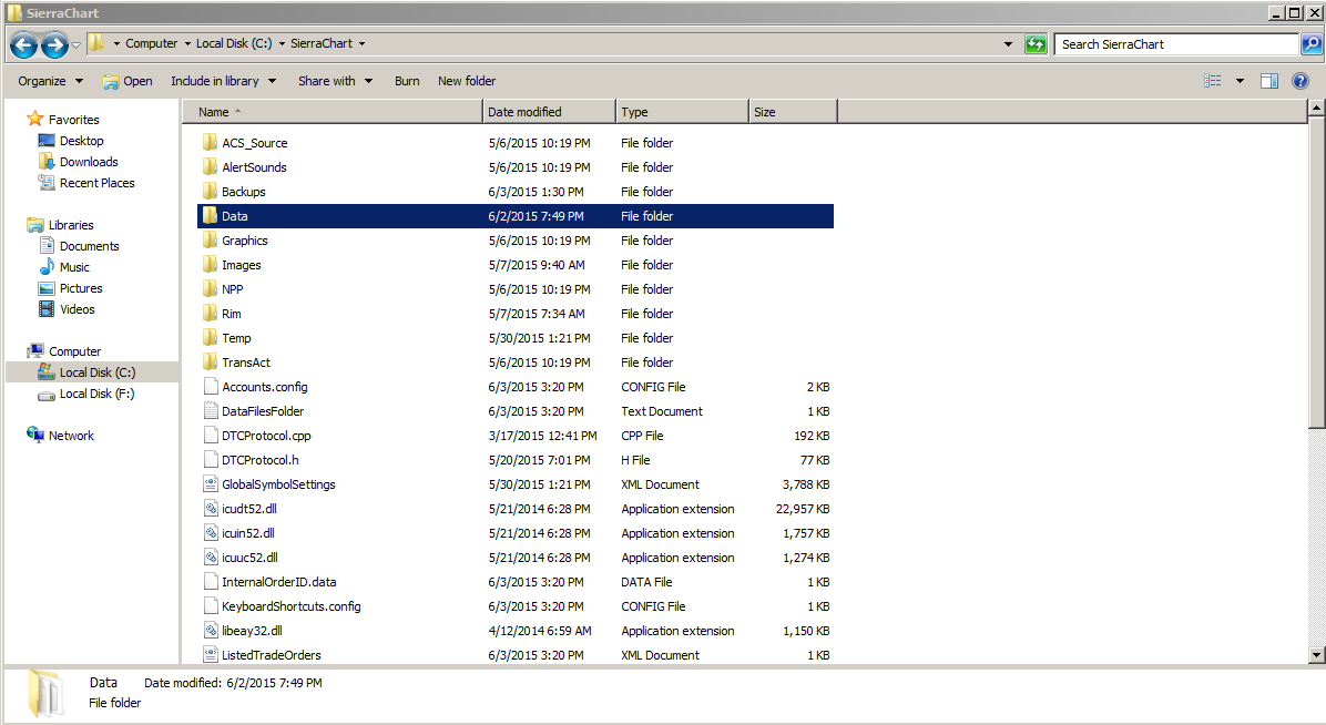 In this case, you first need to export the data to a text format. This is explained here: http://www.sierrachart.com/index.php?page=doc/doc_ImportExport.html Sierra Chart Support - Engineering Level Your definitive source for support. Other responses are from users. Try to keep your questions brief and to the point. Be aware of support policy: https://www.sierrachart.com/index.php?l=PostingInformation.php#GeneralInformation For the most reliable, advanced, and zero cost futures order routing, *change* to the Teton service: Sierra Chart Teton Futures Order Routing |