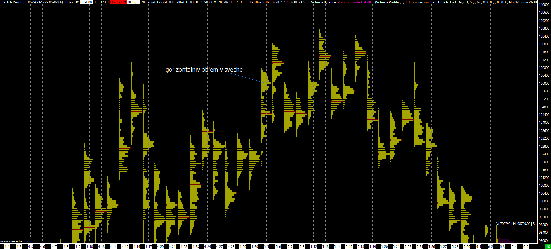 It is a way to display based on the logic of selecting the maximum volume on the entire chart (the visible part) and further mapping the size of the horizontal volumes (their length) in a candle (numbers bar) proportional to the maximum volume on the entire schedule. Screenshot attached: http://www.sierrachart.com/image.php?l=1433407542783.png Thank you in advance for your reply. Language answer is not important. Answer: We understand what you mean. This is not currently supported but we will consider this. Sierra Chart Support - Engineering Level Your definitive source for support. Other responses are from users. Try to keep your questions brief and to the point. Be aware of support policy: https://www.sierrachart.com/index.php?l=PostingInformation.php#GeneralInformation For the most reliable, advanced, and zero cost futures order routing, *change* to the Teton service: Sierra Chart Teton Futures Order Routing |