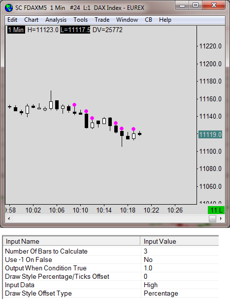 -Put both of the attached files in your Sierra Chart \Data folder. -Go to Analysis >> 3trigger- -When asked 'Clear Existing Studies On Chart?', choose No. This study will calculate all of the triggers but will only paint the 3 most recent triggered dots, counting the green and red combined. You don't need to interact with the spreadsheet; you may minimize it. This is for New Spreadsheets versions only. |