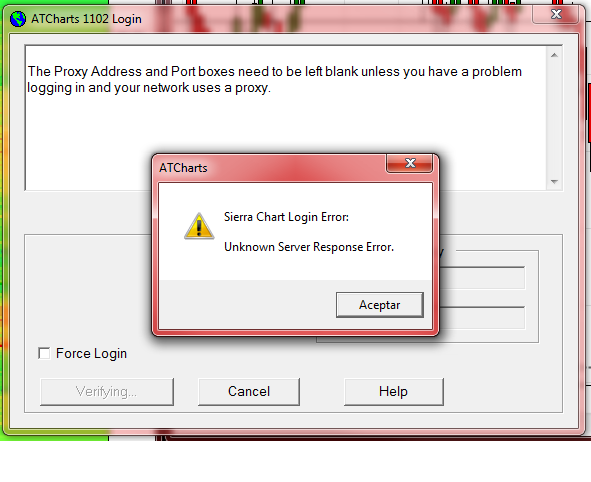 We are releasing version 1262 which will show more of the server response. Update Sierra Chart to the latest prerelease with Help >> Download Prerelease. Here are instructions: https://www.sierrachart.com/index.php?page=doc/download.php#FastUpdate After the update, post an image again of the response you receive after pressing the Login button. Sierra Chart Support - Engineering Level Your definitive source for support. Other responses are from users. Try to keep your questions brief and to the point. Be aware of support policy: https://www.sierrachart.com/index.php?l=PostingInformation.php#GeneralInformation For the most reliable, advanced, and zero cost futures order routing, *change* to the Teton service: Sierra Chart Teton Futures Order Routing Date Time Of Last Edit: 2015-06-09 05:13:51