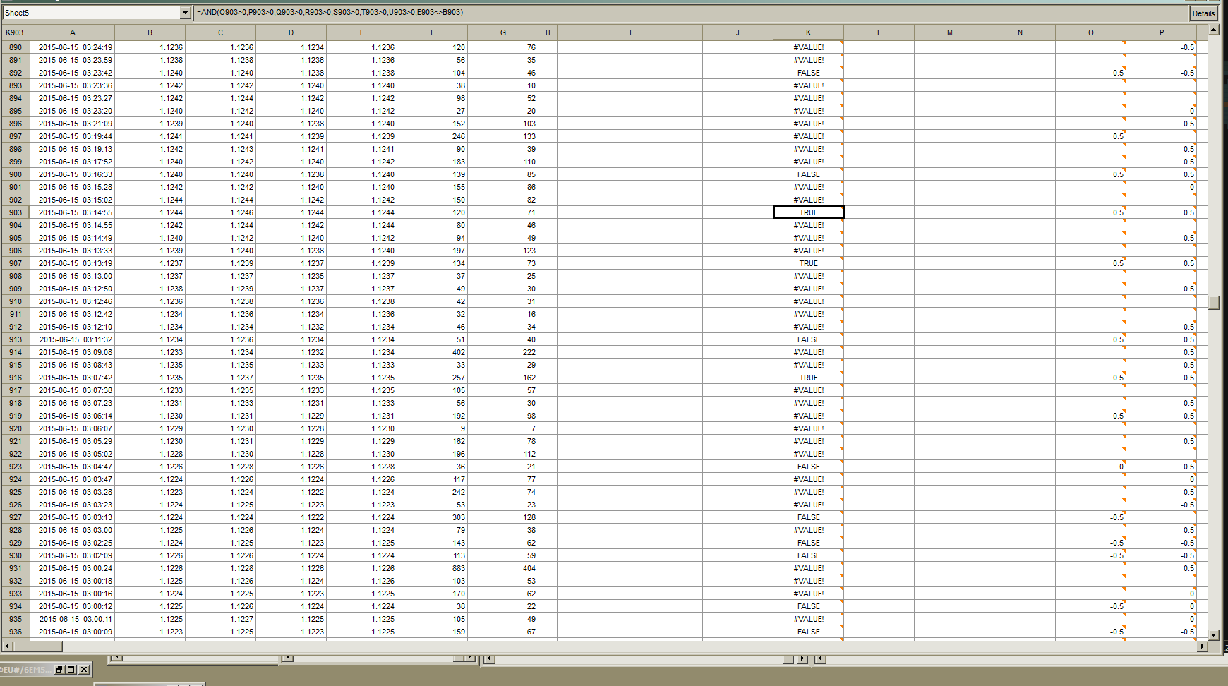 K903 should return FALSE because E903=B903. what is wrong with Spreadsheets? |