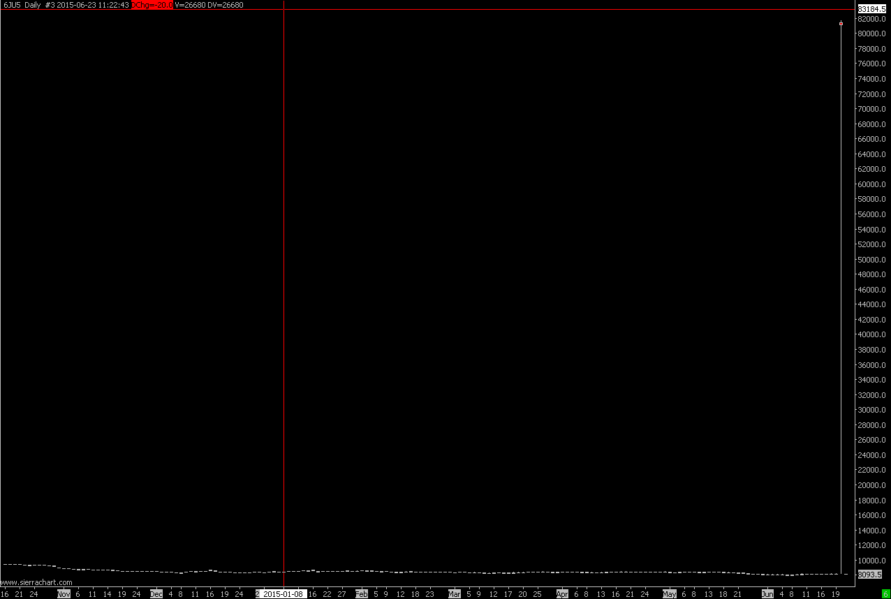 Daily chart for 6JU5 shows enormous spike. Updated symbols settings, disconnected, reconnected, deleted data and reloaded but not able to rectify. Intraday chart is OK Datafeed = TransAct Please advise http://www.sierrachart.com/image.php?l=14350549984.png |
