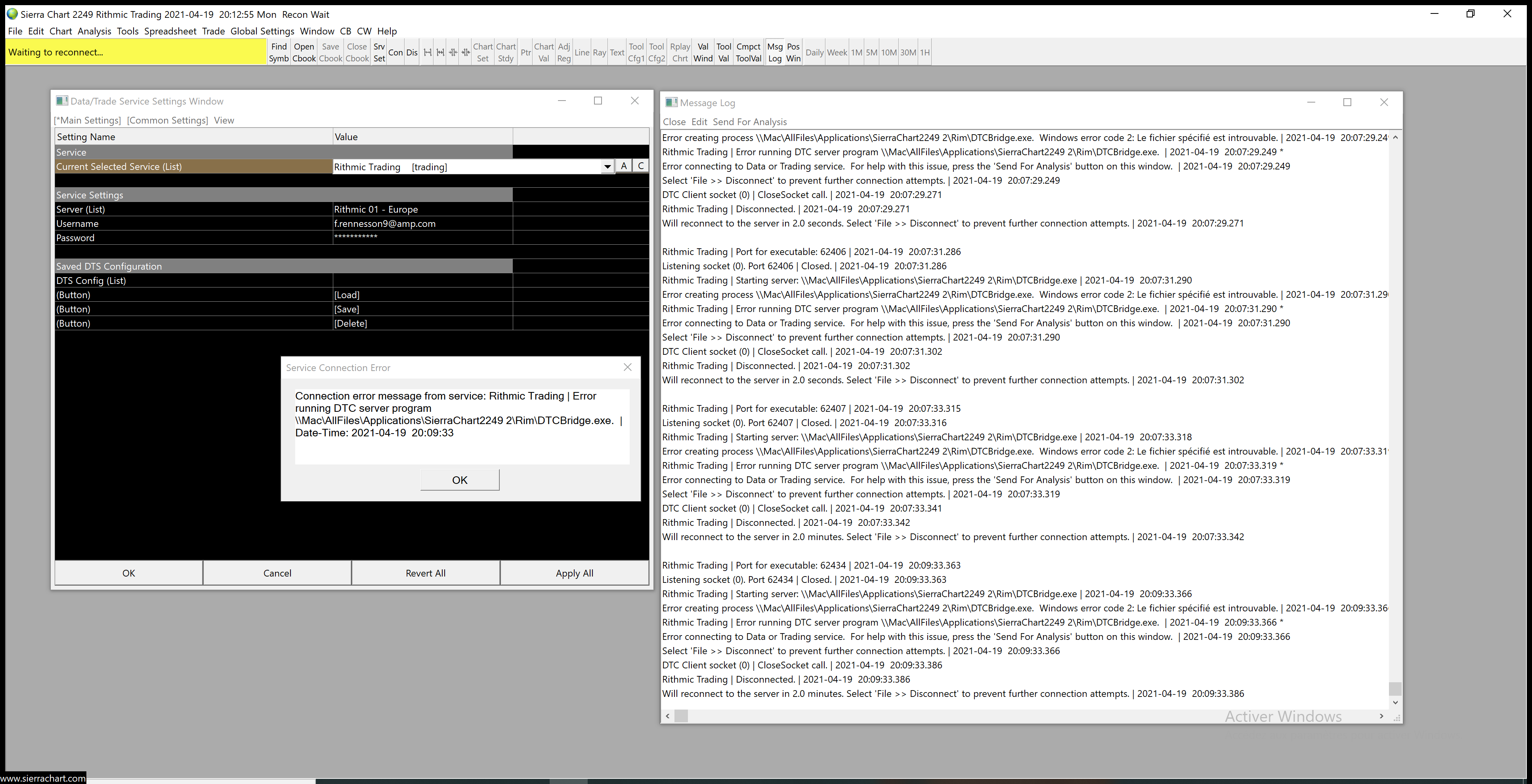 i have subscribed to rithmic feed data through broker amp, and sierra package 5. The connection is not made. http://www.sierrachart.com/image.php?Image=1618863179899.png