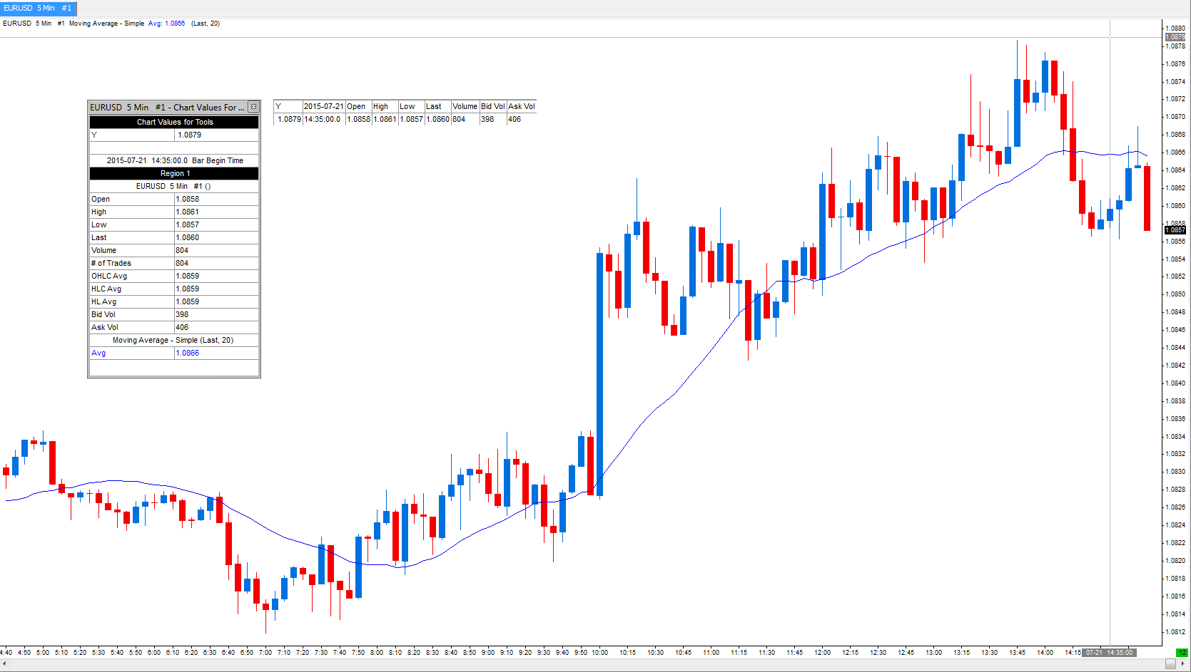 SUCCESS! I was able to use the main Tool Values Window (TVW) to see OHLCVBA in a "static" area, and only the columns I want, and have both OHLCVBA and my study values updated as I move my mouse across all chart regions. I can better-control what's in TVW, and it doesn't re-flow as the date field changes size, and it doesn't re-focus on regions while moving a mouse across chart regions; TVW is static and never changes once positioned, and is good on the eyes. But, now my study MUST be in chart region 1, and MUST be first in the study listing, so that I can show OHLCVBA values from chart region 1 along-side values from my study, which must be in chart region 1 to fit in the TVW window too. Please consider letting us have TWO identical copies of TVW on the screen, so my studies can be in any chart region, and anywhere in the study listing; some people may require this depending-upon their situation. The only difference between the two TVW windows would be their "scrolled" positioning and where they live on the screen. Allowing two identical TVW windows would also look better aesthetically, since one very-lengthy TVW looks weird. Also, it's not really going to work well in my VPS where I have a 640x480 resolution display. Question: is it possible to remove "Renko Open" and "Renko Close" from the TVW? I have checked Chart Settings-->Display Main Price Graph Values in Values Window, but don't see those in the "settings to display" box. Thanks for your consideration. Date Time Of Last Edit: 2015-07-24 19:05:53
