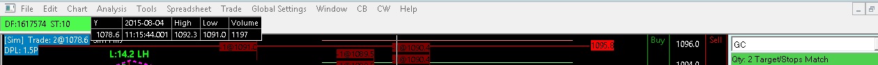 Thanks...that helps getting the chartbook tab title off. For 1) adding the compact tool values window in the same place kind of does the job...just little cumbersome for me. Not a big deal. FWIW...For efficiency, I was trying to get cursor values for OHLC into a toolbar so I did not need the compact tool values window and could take advantage of free space better at the top. Date Time Of Last Edit: 2015-08-04 19:10:30