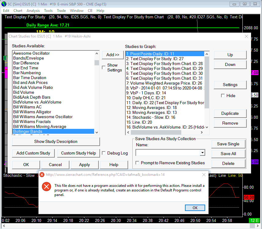 I downloaded the latest current version and seem to be having problems with the "Show Study Description". I've attached a file with the detailed error message. I also got the same message when I tried to initiate the message for support within Sierra Charts. Any help would be greatly appreciated. Thanks...