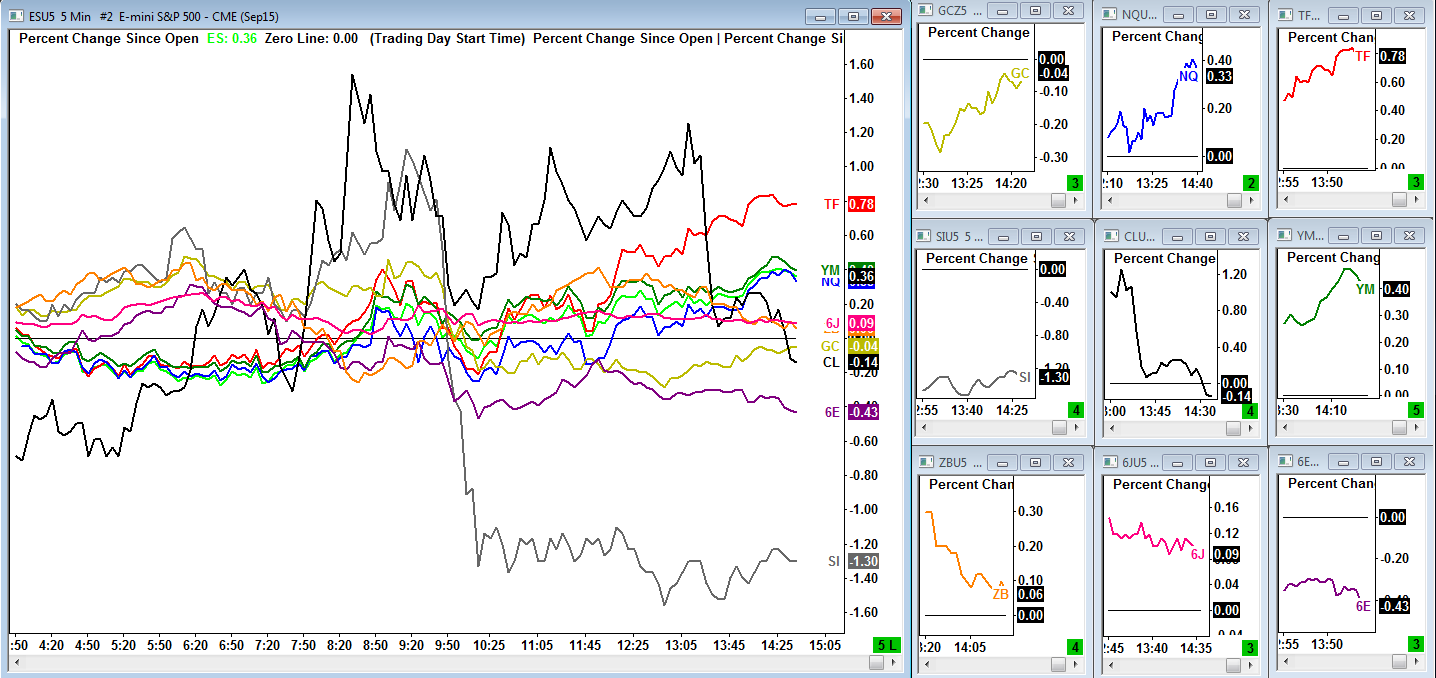 For this you need to use the Percent Change Since Open study: http://www.sierrachart.com/index.php?page=doc/doc_TechnicalStudiesReference.html#s325 Sierra Chart Support - Engineering Level Your definitive source for support. Other responses are from users. Try to keep your questions brief and to the point. Be aware of support policy: https://www.sierrachart.com/index.php?l=PostingInformation.php#GeneralInformation For the most reliable, advanced, and zero cost futures order routing, *change* to the Teton service: Sierra Chart Teton Futures Order Routing |