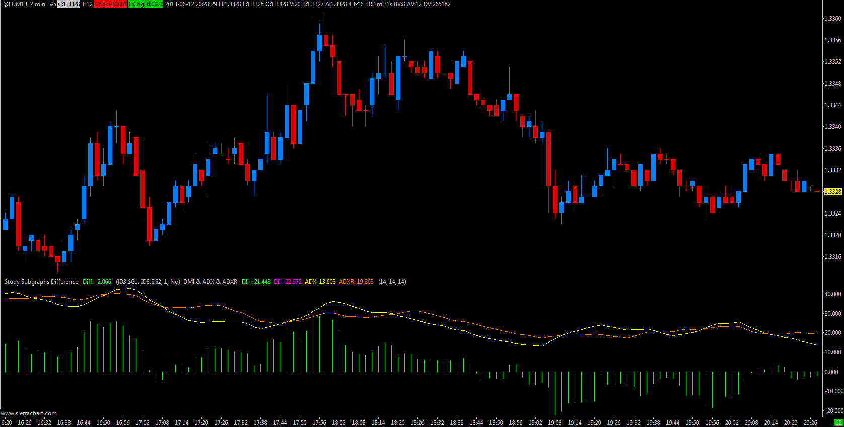Yes. This can be done. The histogram is a difference between DI + and DI -. Use the study Study Subgraphs Difference. Here is the documentation: http://www.sierrachart.com/index.php?l=doc/doc_TechnicalStudiesReference.html#s185 Sierra Chart Support - Engineering Level Your definitive source for support. Other responses are from users. Try to keep your questions brief and to the point. Be aware of support policy: https://www.sierrachart.com/index.php?l=PostingInformation.php#GeneralInformation For the most reliable, advanced, and zero cost futures order routing, *change* to the Teton service: Sierra Chart Teton Futures Order Routing |