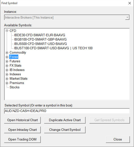 Update Sierra Chart to the latest prerelease with Help >> Download Prerelease. Here are instructions: https://www.sierrachart.com/index.php?page=doc/download.php#FastUpdate The latest release supports this: Added support to access SC Forex Data when using any of the other supported Data and Trading services. The symbols are listed in File >> Find Symbol under the categories CFD and Forex. This symbol listings may not be up-to-date until the end of the day on 2015-08-18.