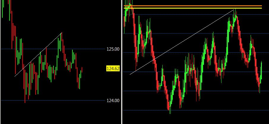 The Heiken-Ashi chart is a tick chart. When the chart is switched to a minute chart the line tool is applied correctly. |