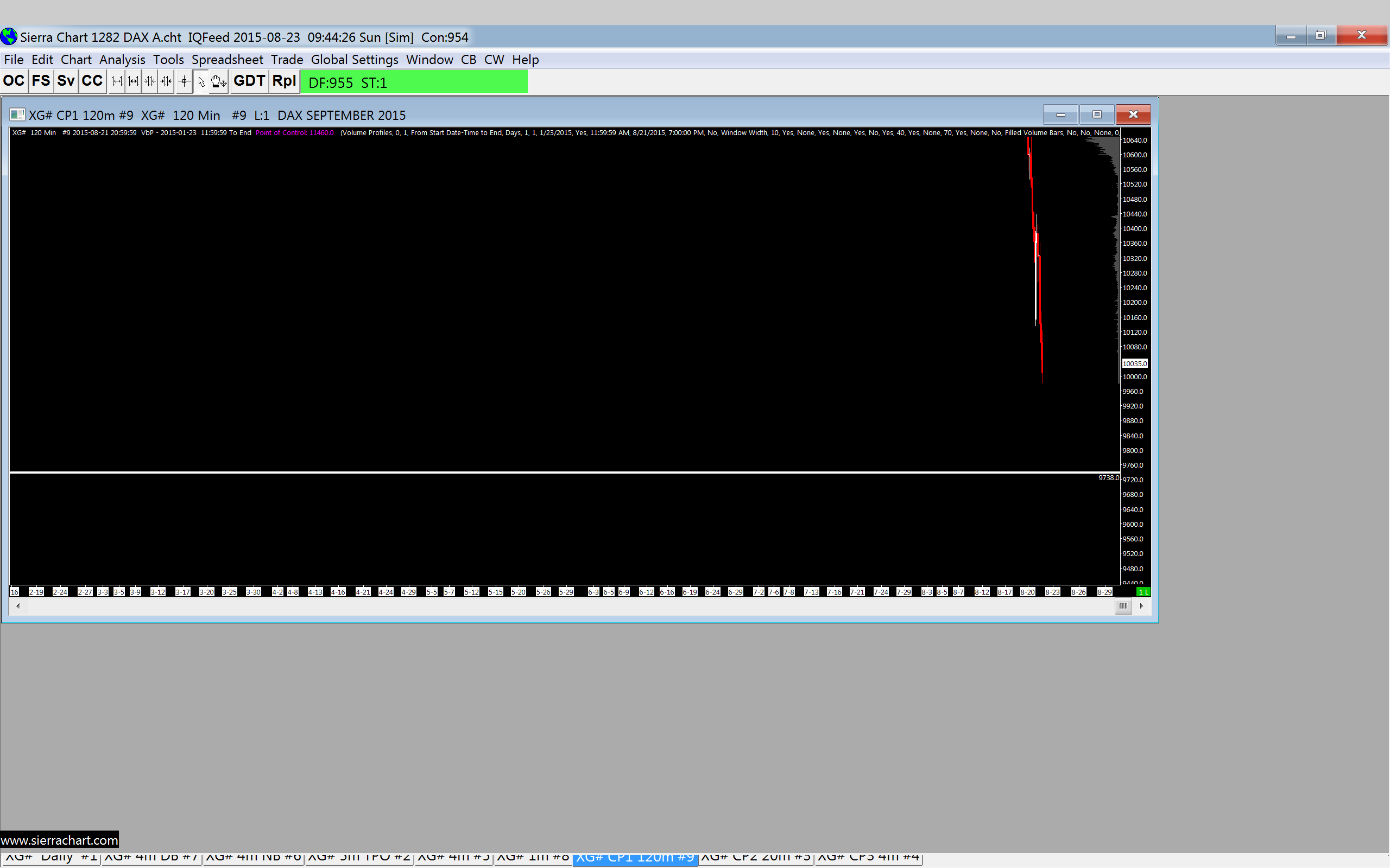 I have restored and maximised all charts and restarted both Sierra Charts and Windows all with no effect. Note that the tabs appear to be hidden by the main (grey) window (not the tabbed chart windows) as in the following screen shot: http://www.sierrachart.com/image.php?l=1440319473333.png Any further advice appreciated. Thanks, R |