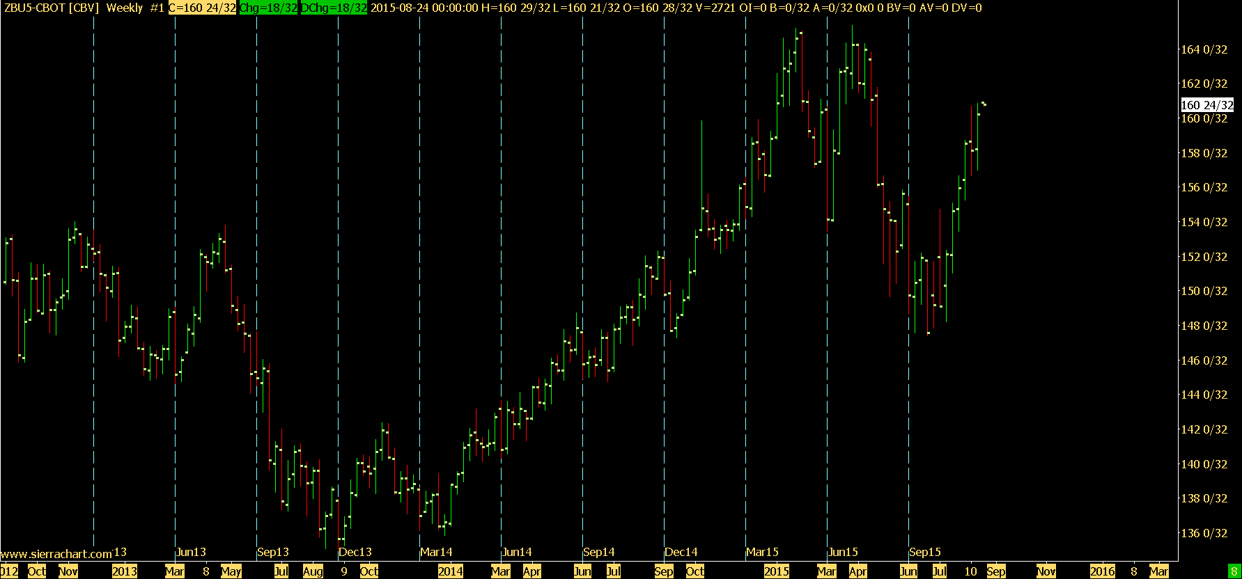I recently updated from SC 1261 to 1282. I am using a rithmic connection with Deep Discount Trading/Wedbush as my broker. The ZBU5 weekly chart is not showing properly (see attached). If I change the weekly chart to a daily chart then it displays fine. I tried deleting all data and re-downloading and that didn't work. The problem isn't limited to ZBU5- every weekly chart is off, but the daily and monthly charts are fine. Date Time Of Last Edit: 2015-08-23 21:48:09