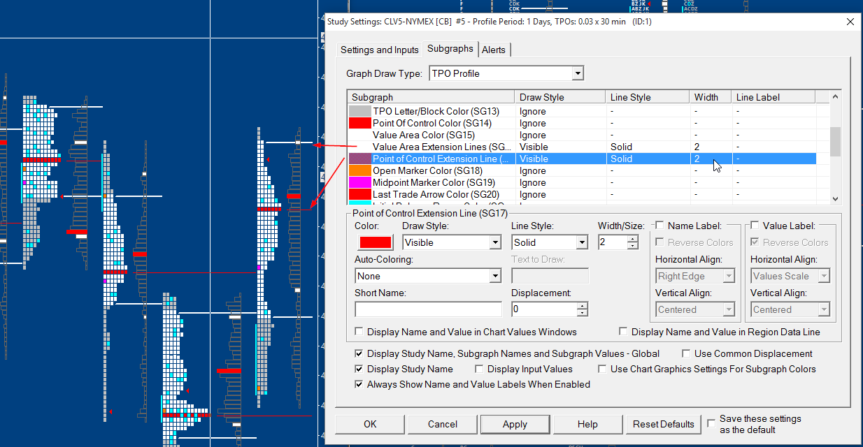 The capabilities you are looking for are not supported. We will make sure that the width can be set for the Point of Control extension line for the TPO Profile Chart study. Sierra Chart Support - Engineering Level Your definitive source for support. Other responses are from users. Try to keep your questions brief and to the point. Be aware of support policy: https://www.sierrachart.com/index.php?l=PostingInformation.php#GeneralInformation For the most reliable, advanced, and zero cost futures order routing, *change* to the Teton service: Sierra Chart Teton Futures Order Routing |