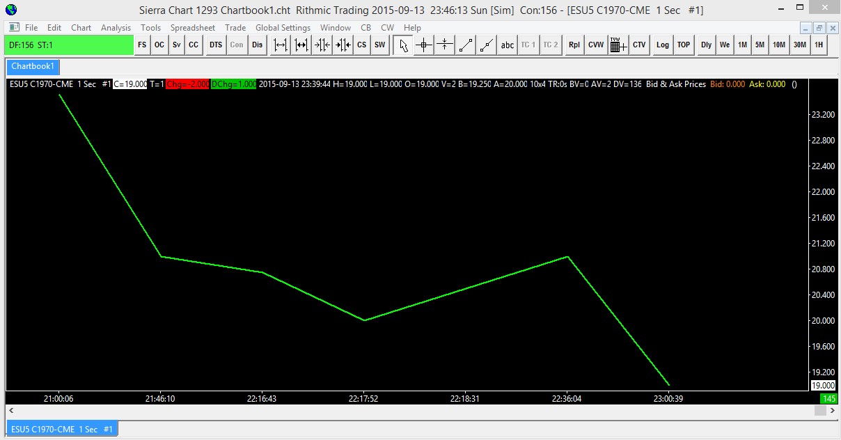 You need to look up the options symbol in the Rithmic R|Trader software. Change the '.' in the symbol to a '-' and use that symbol in Sierra Chart. This is all. Sierra Chart Support - Engineering Level Your definitive source for support. Other responses are from users. Try to keep your questions brief and to the point. Be aware of support policy: https://www.sierrachart.com/index.php?l=PostingInformation.php#GeneralInformation For the most reliable, advanced, and zero cost futures order routing, *change* to the Teton service: Sierra Chart Teton Futures Order Routing Date Time Of Last Edit: 2015-09-14 00:59:40