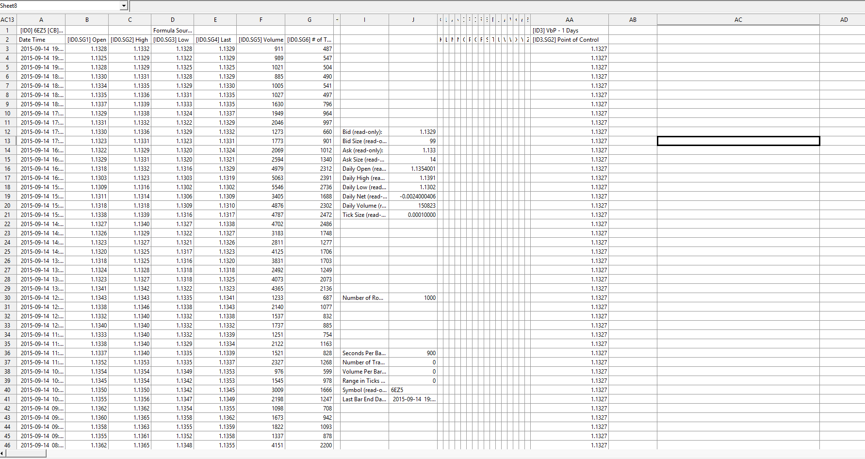 SierraChart 1296 - new spreadsheets. As per the attached chart - I have a 15m chart with a volume by price study, set to draw a profile daily, and mark the point of control as well as value area with value area high and low drawn. I've added a spreadsheet study to this chart. Settings in attached pic. The resulting spreadsheet study is not exporting the Value area High/low price points - only the Point of control price. See spreadsheet pic. However, there is some more data starting at a much later column, although it has no label and is running horizontally instead of vertically. See spreadsheetpic2. What is this further data? How can I have a volume by price study export the value area high/low prices into the spreadsheet study? Thanks |