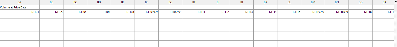 To get the Value Area High and Low on a Spreadsheet you need to use the Volume Value Area Lines study. Although we will see if we can solve this with the Volume by Price study in the next release. Refer to this input description here to understand the Volume at Price data which is being outputted to the Spreadsheet: Spreadsheet Study Inputs: Output Volume at Price Data Sierra Chart Support - Engineering Level Your definitive source for support. Other responses are from users. Try to keep your questions brief and to the point. Be aware of support policy: https://www.sierrachart.com/index.php?l=PostingInformation.php#GeneralInformation For the most reliable, advanced, and zero cost futures order routing, *change* to the Teton service: Sierra Chart Teton Futures Order Routing |