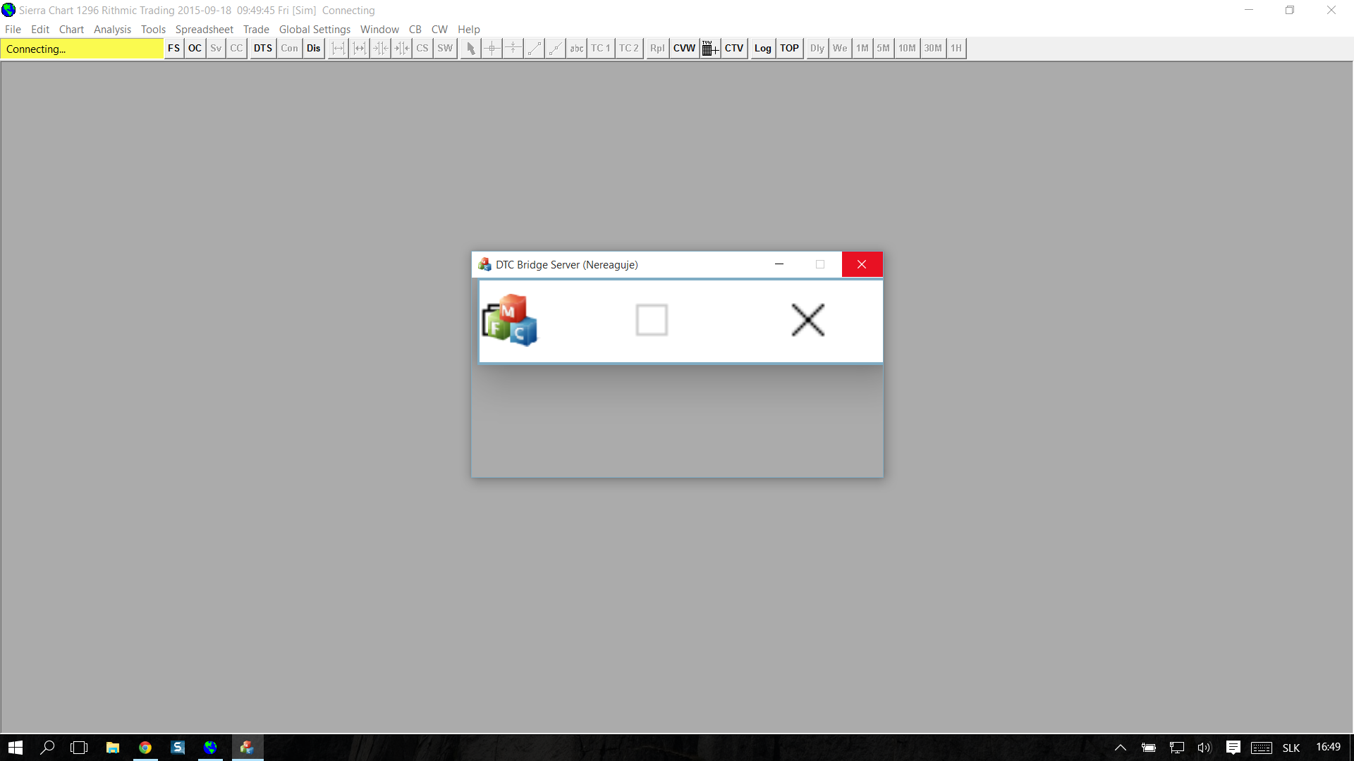 Hi. I have a new notebook with Windows 10. I have installed Sierra Chart and was charged I usernames and passwords for Sierra Chart and for a data feed provider - Ritmic. The software will not connect. I added in the Annex photo. Can you help with that? Sincerely Peter Zetocha |