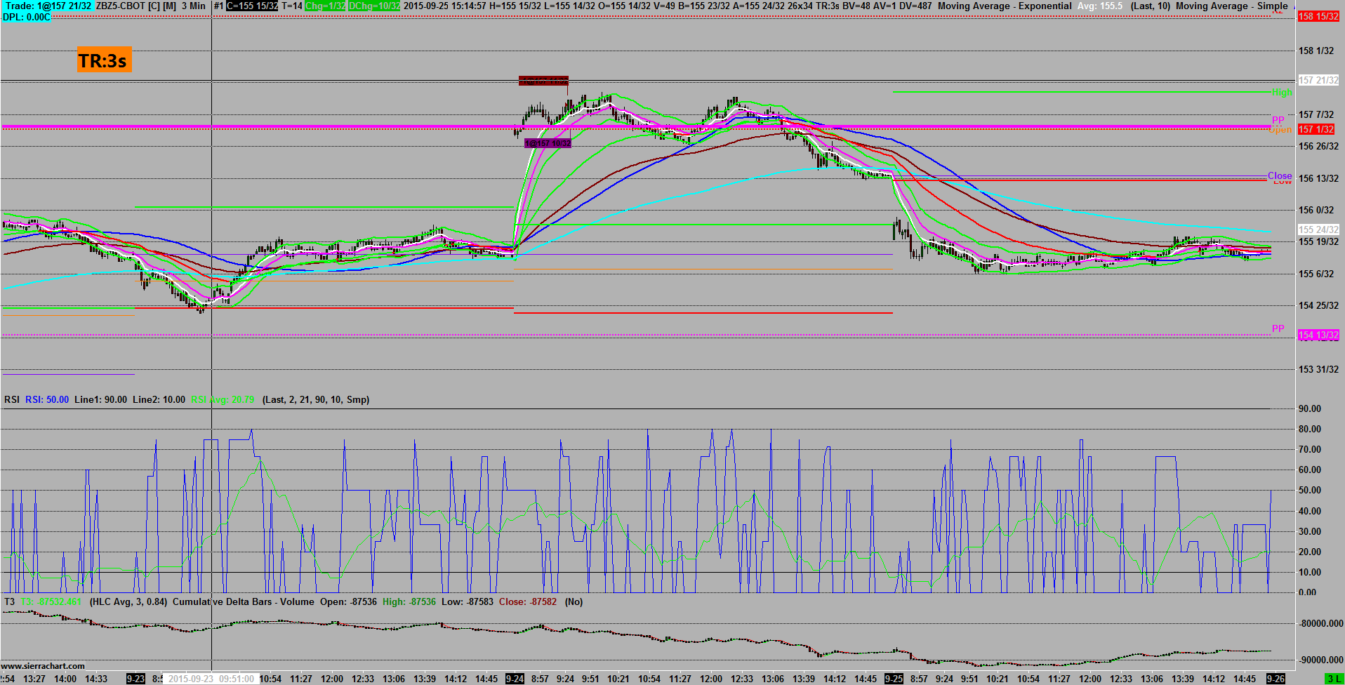 I have my RSI set up on my 3 min chart trading the 30yr and for some reason the RSI is bottoming out on zero before it has a chance to close. Is this a scaling issue? I have it set on the main price chart with a 2 length. Thanks |