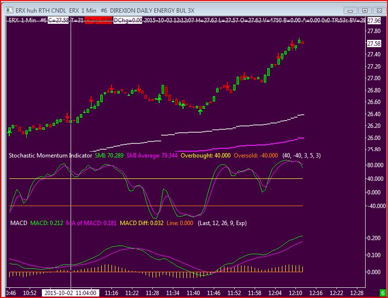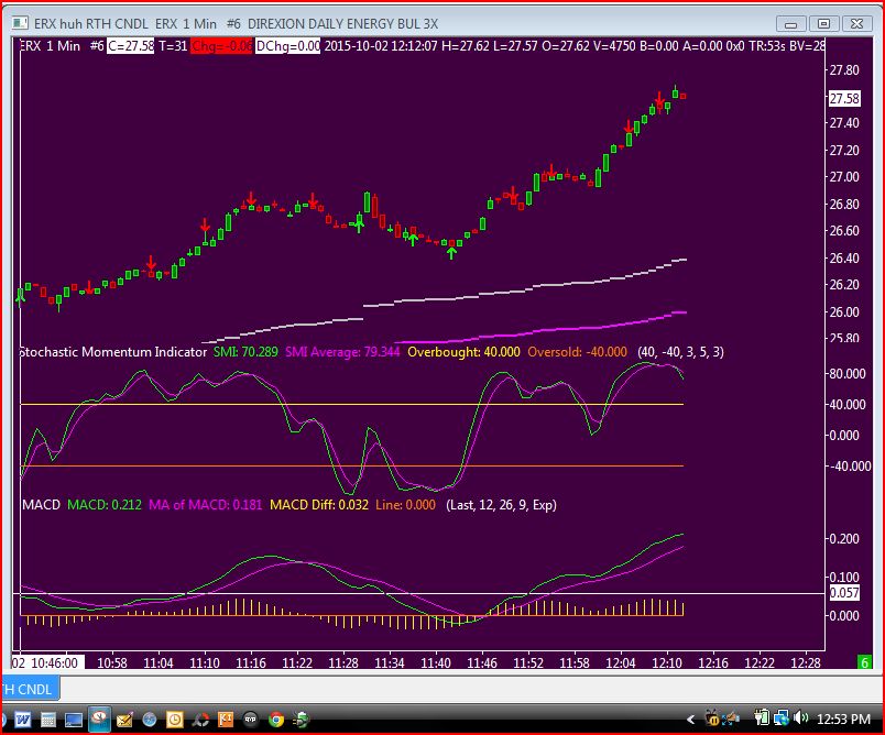 I have working charts for CL futures that work fine. The chart was duplicated and a new symbol,ERX, was selected. This chart does not update. I'm using the SC data feed. The pictures were taken within a minute of each other. I have tried loading other stocks/equities and they don't update. The futures charts do. I'm stumped, what's going on ? Thank you from the newbie. |