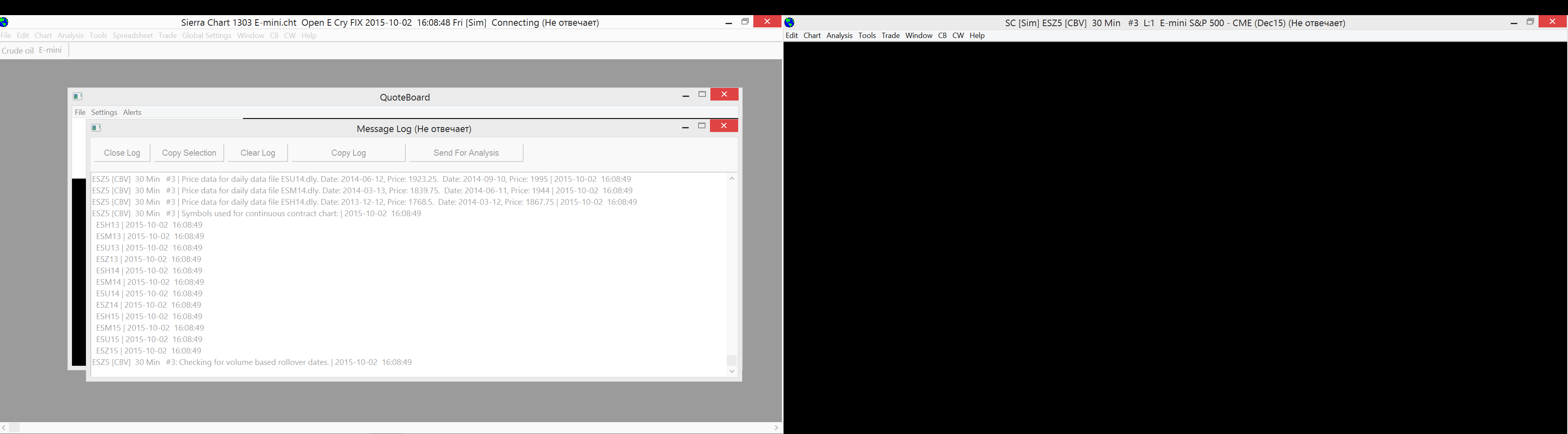 We found the problem. We will be releasing version 1304 in about 30 minutes. Sierra Chart Support - Engineering Level Your definitive source for support. Other responses are from users. Try to keep your questions brief and to the point. Be aware of support policy: https://www.sierrachart.com/index.php?l=PostingInformation.php#GeneralInformation For the most reliable, advanced, and zero cost futures order routing, *change* to the Teton service: Sierra Chart Teton Futures Order Routing Date Time Of Last Edit: 2015-10-03 10:54:12