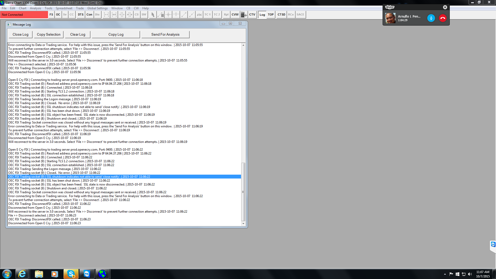 Hi Kenneth Ivey here OEC is setup and turned ON Sierra chart is also turned ON, but I keep getting this close notify error preventing connection,