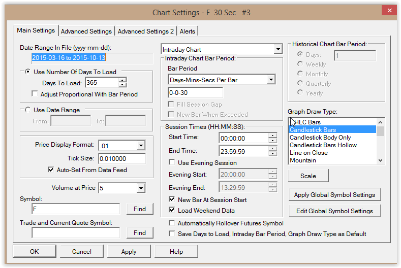 Do any of your historical data feeds have 30 second charts? It doesn't work when I switch to Sierra's Historical Data. I am only able to change the chart to 0-0-30 when Im hooked up to my IB feed? I have version 3. Ideas? |