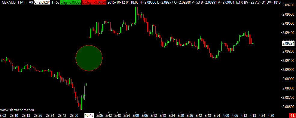 http://www.sierrachart.com/image.php?l=1444623100701.png Please note that about 2 1/2 hours of price data on this 1M chart are missing in the spot where I've placed the elipse. The chart on 10/09 ends at the normal 23:59 hours but the next bar paints at 0235 hours on 10-12. I suspect this problem exists because of the FXCM data problem you reported to me in an earlier post in this string. I'm wondering if it will be necessary to load that data in order for studies to be portrayed accurately in my charts. As per instructions, I have removed all studies from this chart I've sent you. Thank you. Jon Date Time Of Last Edit: 2015-10-12 04:37:07