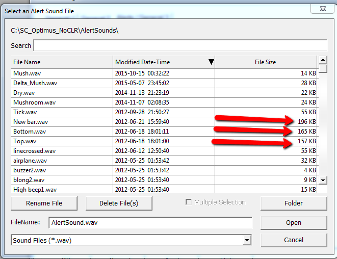 I noticed that the 4 sound alert files that do work are much larger then all the other that don't work. See attached screenshots. Does this help make any sense of this problem? |
