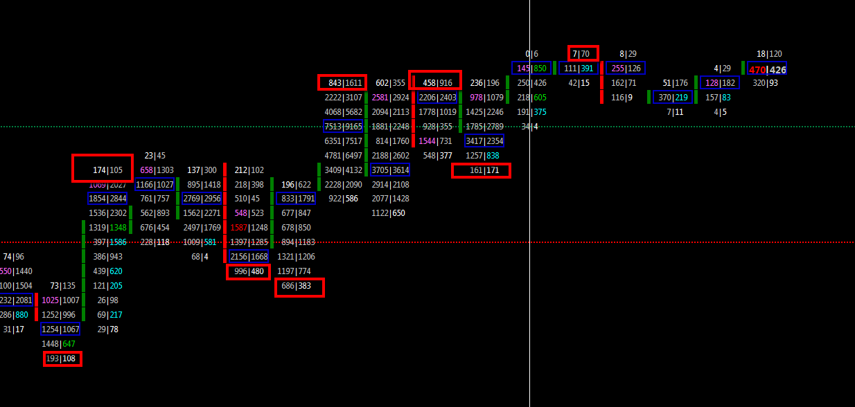 Sorry, but 45x65 instead 0x65, means unfinished aution and that means that the market has to return to fill all those contracts, and its not possible in that case because everything is an unfinished auction. I dont know why this happens, but with ninjatrader indis we dont have this values
